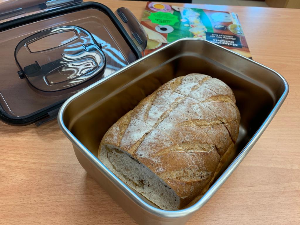 But after a few days, closing the lid became quite effortless. I stored my mix grain walnut bread in the container the other day and brought it to my workplace to share the bread with my colleagues.