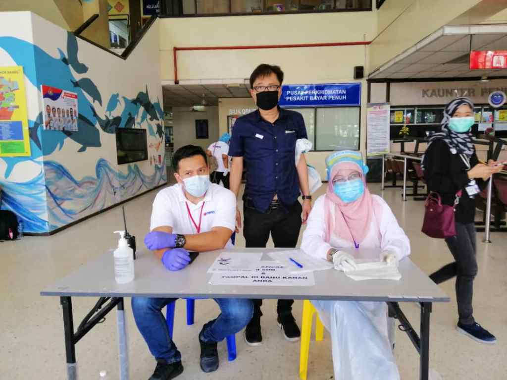 Michael Tay seen here with the frontliners during his visit to the hospital in JB last month.