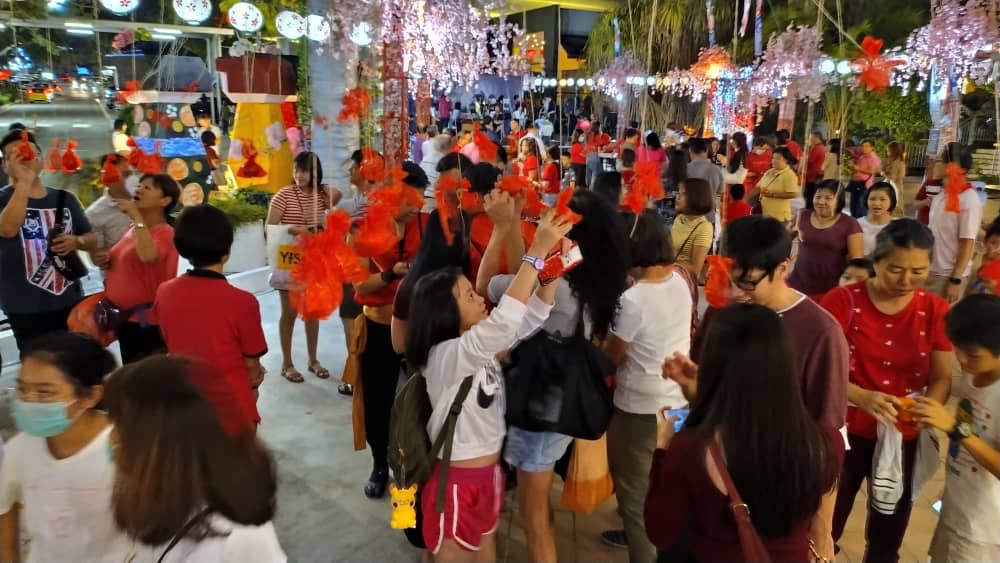 The car park area of Sutera Mall was abuzz with activities last night as the management of the mall together with Southern Chinese Musical Society co-organised a Chap Goh Mei party featuring, among others, a live band performance, wushu performance, 24 Drum performance, Chinese orchestra performance and a mass tossing of Yee Sang to invite more prosperity and cheer into the new year.