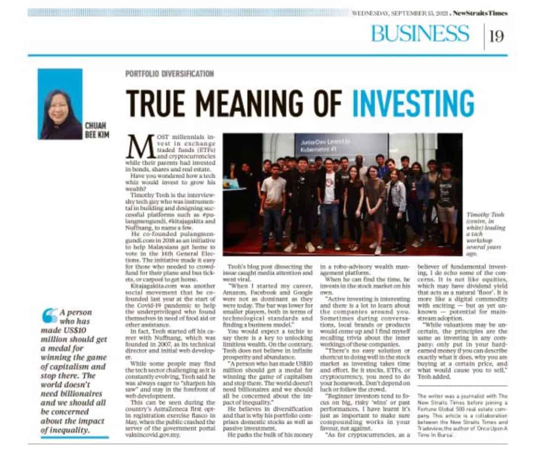 Back to the collaboration with NST and Tradeview, let’s get to know Timothy Teoh a little better. He’s a software architect at REA Group Asia and a tech whizz who co-founded KitaJagaKita, PulangMengundi and also the former Chief Technology Officer of Nuffnang.